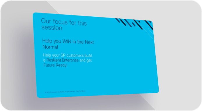 Our focus for this session Help you WIN in the Next Normal Help your SP customers build a Resilient Enterprise and get Future Ready! ©© 2019 2020 CCiisscoco a annd/d/oorr iittss aaffiffilliiaatteess.. AAllll rriighghttss r reesseerrvveed.d. Cisco Confidential