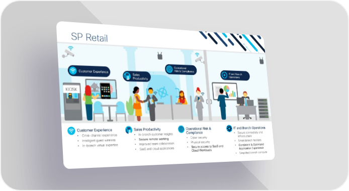 SP Retail Operational Risk & Compliance IT and Branch Customer Experience Sales Operations Productivity KIOSK Customer Experience Sales Productivity Operational Risk & IT and Branch Operations • Omni-channel experience • In-branch customer insights Compliance • Secure connectivity and • Intelligent guest wireless • Secure remote working • Cyber security infrastructure • In-branch virtual expertise • Improved team collaboration • Physical security • Smart branch facilities • SaaS and cloud applications • Secure access to SaaS and • Consistent & Optimized Cloud Workloads Application Experience © 2020 Cisco and/or its affiliates. All rights reserved. • Simplified branch compute Cisco ASEAN Virtual Partner Conference