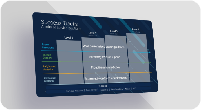 Success Tracks Level 4 A suite of service solutions Level 3 Includes level 3 Level 2 Includes level 2 Includes level 1 Level 1 Expert More personalized expert guidance Resources Trusted Increasing level of support Support Insights and Proactive and predictive Analytics Contextual Increased workforce effectiveness Learning CX Cloud ©© 2020 2020 CCiisscoco a annd/d/oorr iittss aaffiffilliiaatteess.. AAllll rriighghttss r reesseerrvveed.d. Cisco ASEAN Virtual Partner Conference Campus Network | Data Center | Security | Collaboration | Cloud | IoT
