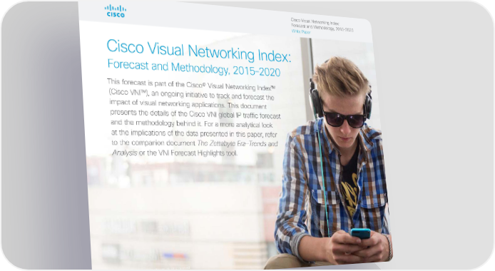 Cisco Visual Networking Index: Forecast and Methodology, 2015–2020 White Paper Cisco Visual Networking Index: Forecast and Methodology, 2015–2020 This forecast is part of the Cisco® Visual Networking Index™ (Cisco VNI™), an ongoing initiative to track and forecast the impact of visual networking applications. This document presents the details of the Cisco VNI global IP traffic forecast and the methodology behind it. For a more analytical look at the implications of the data presented in this paper, refer to the companion document The Zettabyte Era—Trends and Analysis or the VNI Forecast Highlights tool. © 2016 Cisco and/or its affiliates. All rights reserved. 1